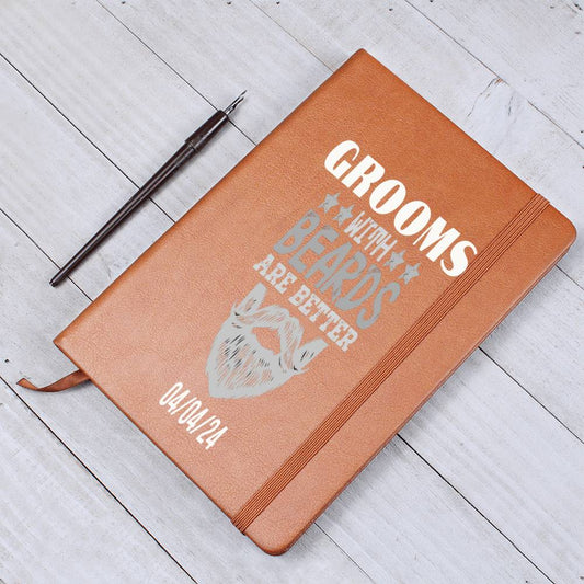 Custom Leather Journal for Bearded Groom, Bachelor Party Favors for Groomsmen, Minimalist Honeymoon Log Book