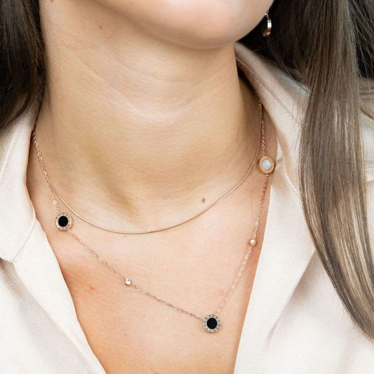 Dual Layer Round Multi-string Black White Roman Charm Necklace