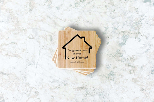 Engraved Minimalist Bamboo Coasters Congratulations on your New Home